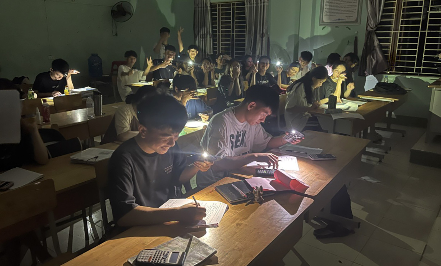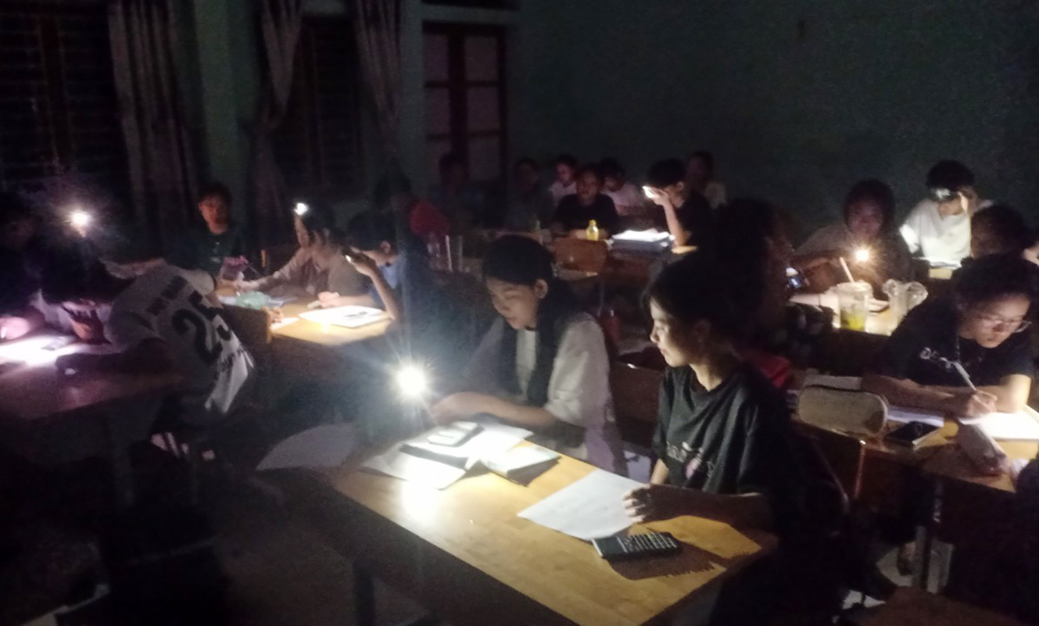 Mất điện, thầy trò soi đèn pin, điện thoại dồn sức ôn thi tốt nghiệp