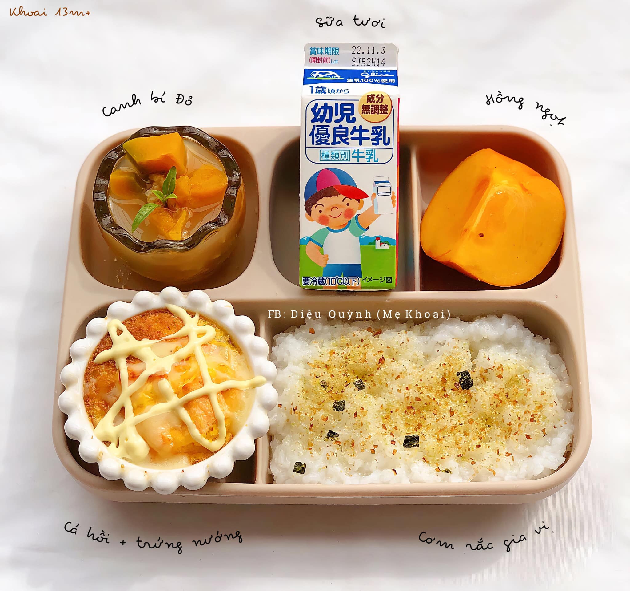 Bên dưới là một số thực đơn cho bé 1 tuổi đầy đủ dinh dưỡng và đẹp mắt của chị Diệu Quỳnh: