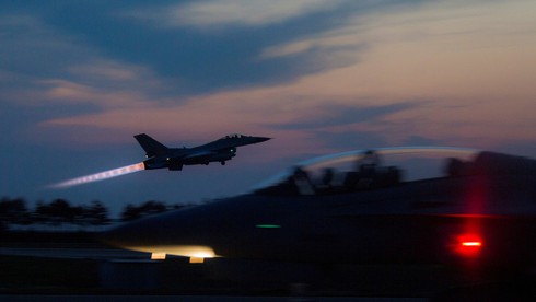 Máy bay F-16 của Hàn Quốc cất cánh để làm nhiệm vụ. |