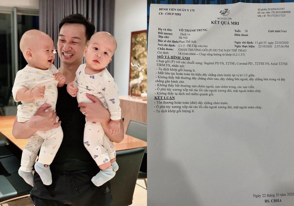 Được biết, "ông bố bỉm sữa" của 2 quý tử sinh đôi từng gặp sự cố tương tự ở chân trái vào 7 năm trước, từ thời mới quen bà xã hiện tại, được cô chăm sóc thường xuyên tại bệnh viện.