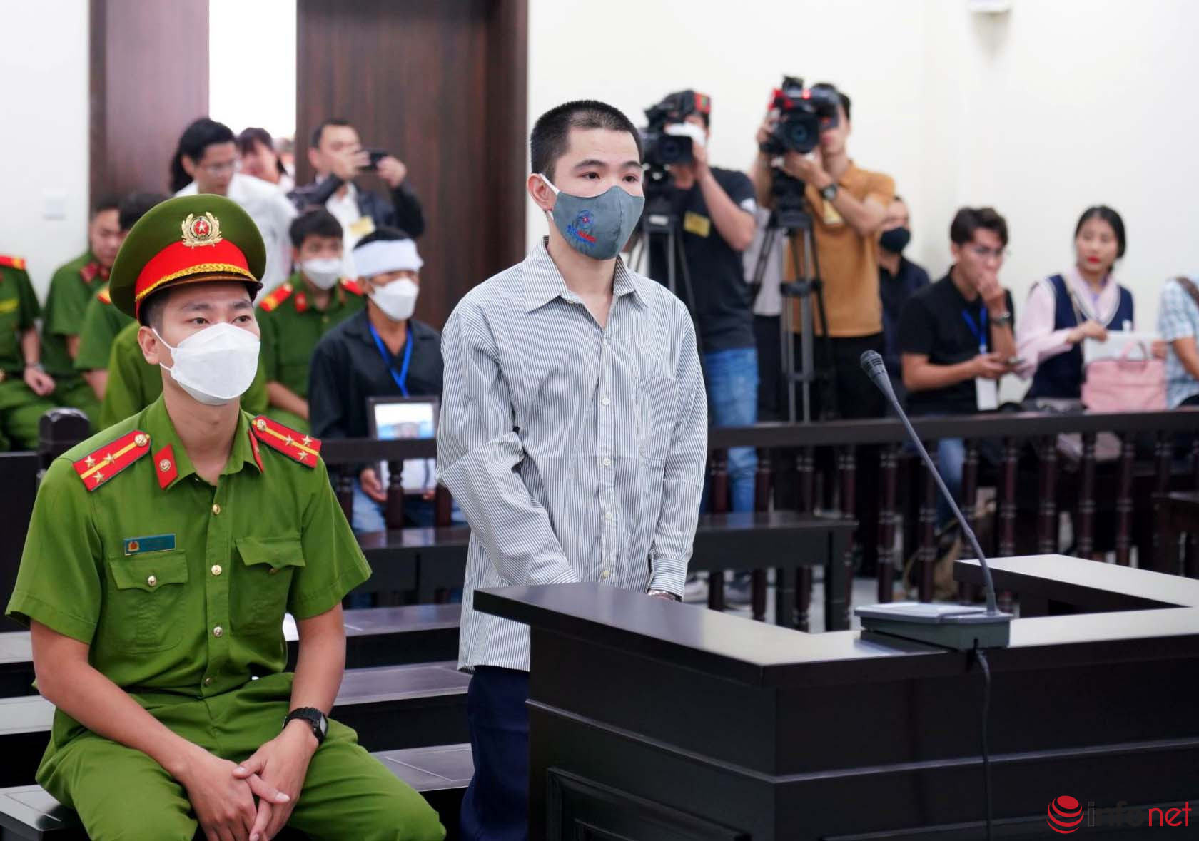 Đúng 8 giờ 30 phút, phiên tòa khai mạc với phần thủ tục. Tại tòa, bị cáo Huyên tỏ ra bình thản. Tuy nhiên, trả lời Hội đồng xét xử (HĐXX) về nhân thân, bị cáo nói mình bị nặng 2 tai nên không nghe rõ HĐXX nói gì và phải gắn máy trợ thính.