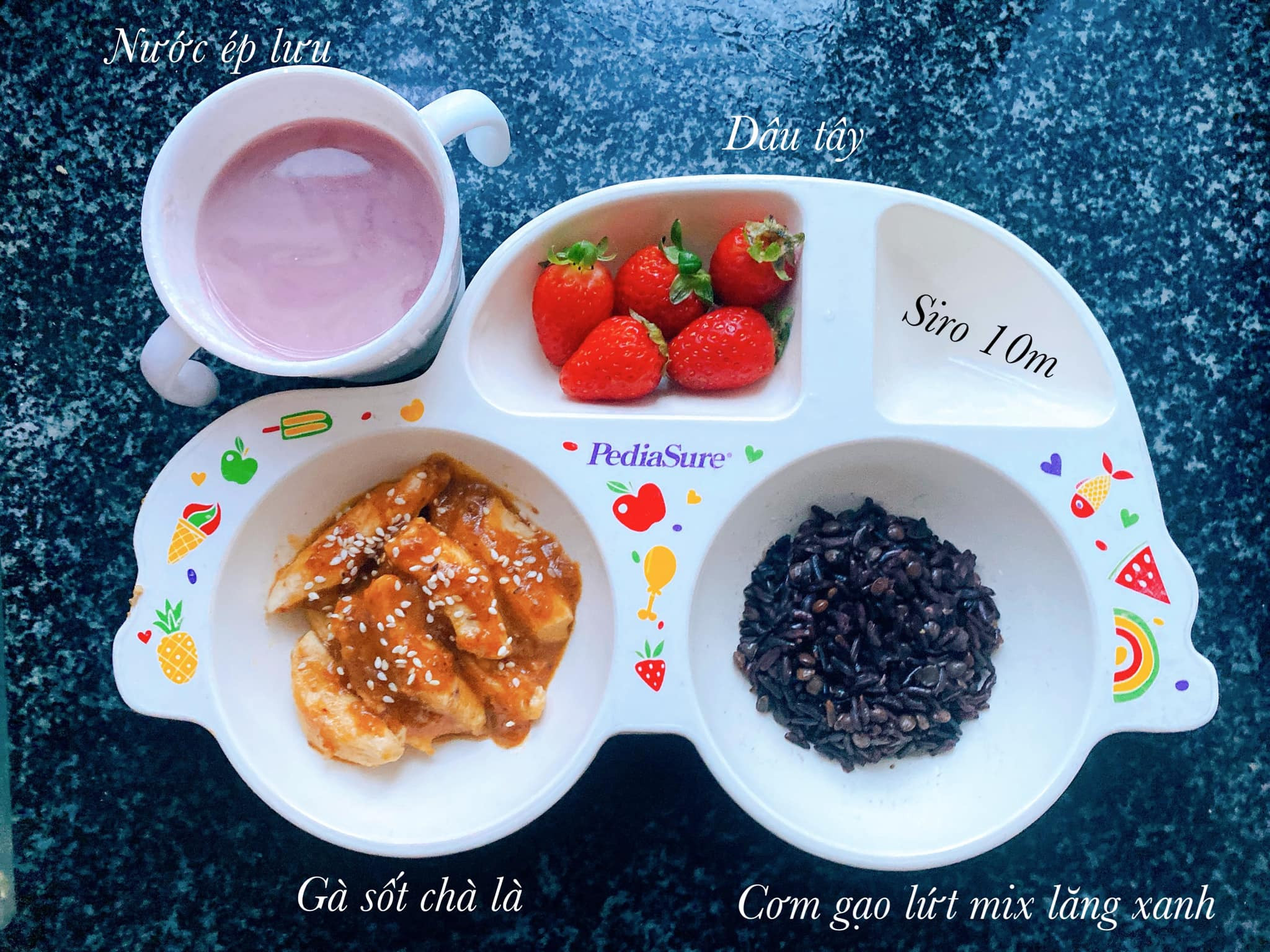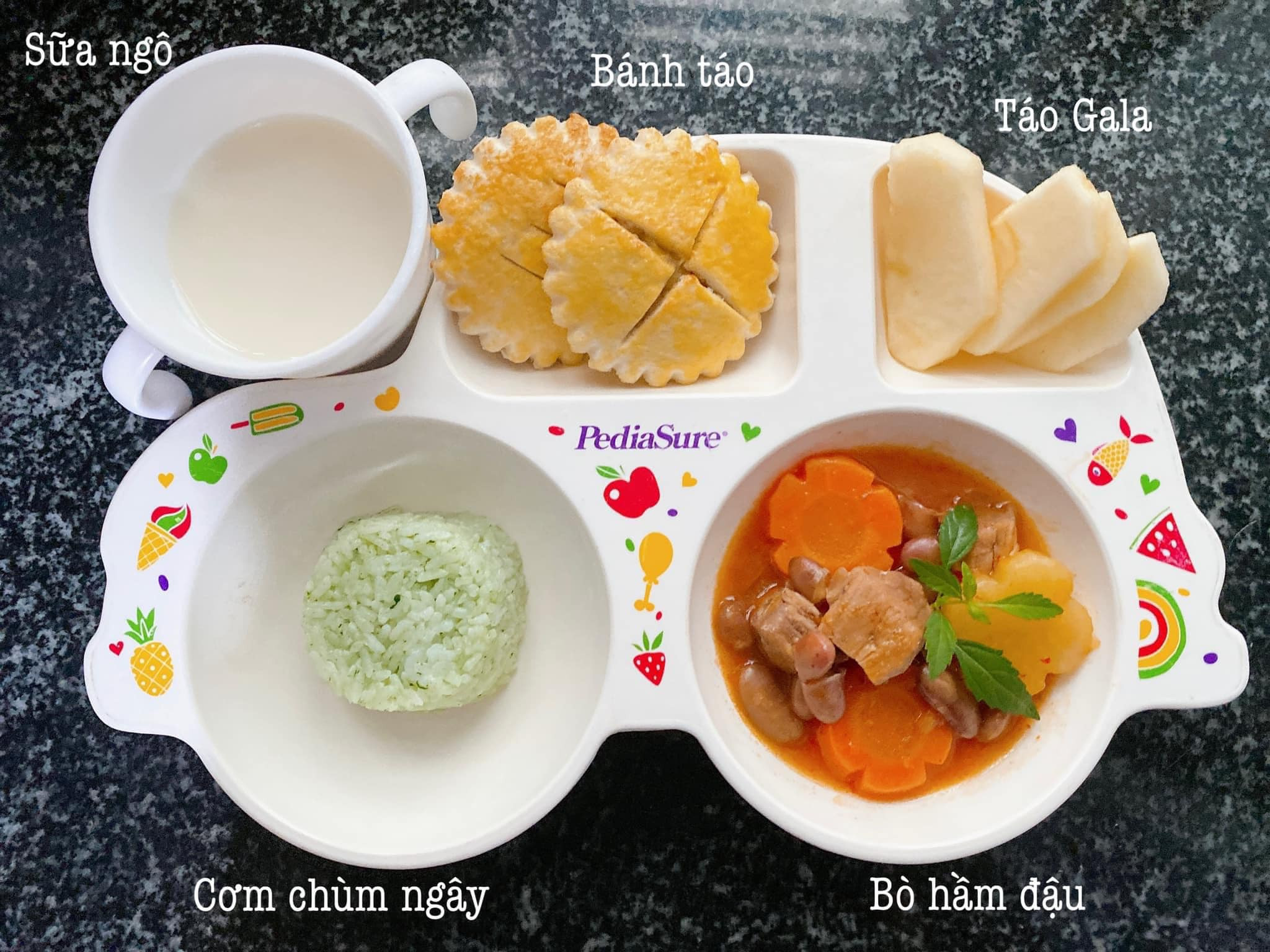 Chị Thùy cho biết, các bữa ăn của con luôn được bổ sung đầy đủ các chất dinh dưỡng gồm: tinh bột; chất béo; protein và đạm; chất xơ; các loại vitamin và khoáng chất.