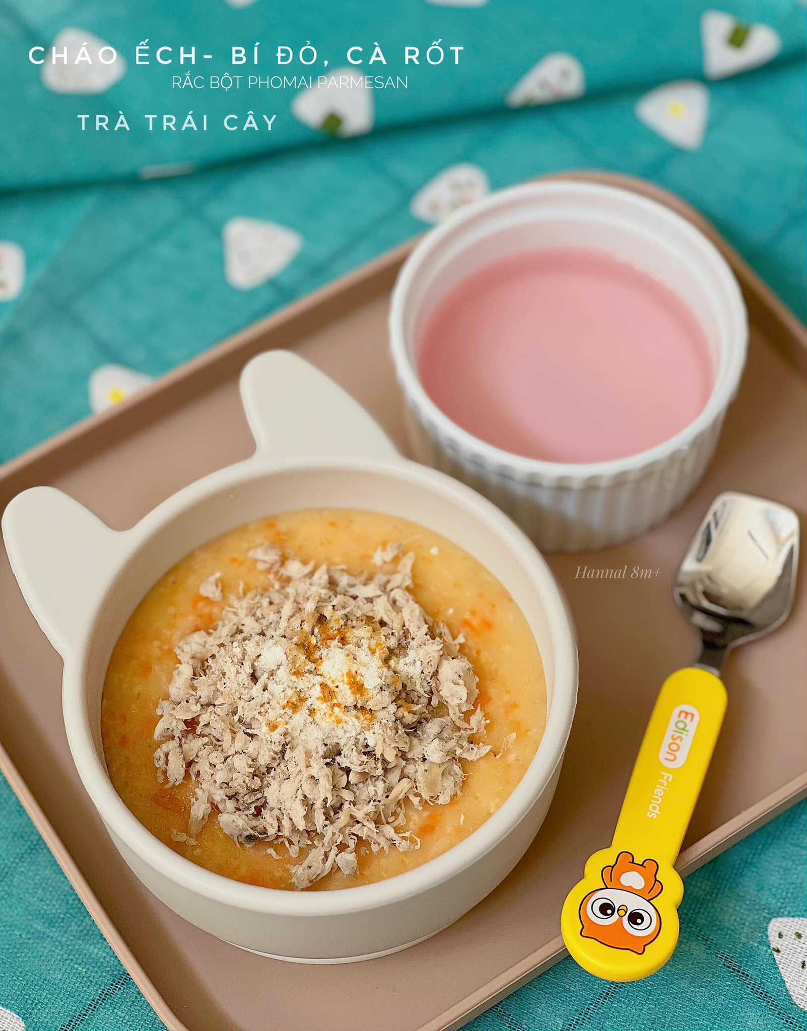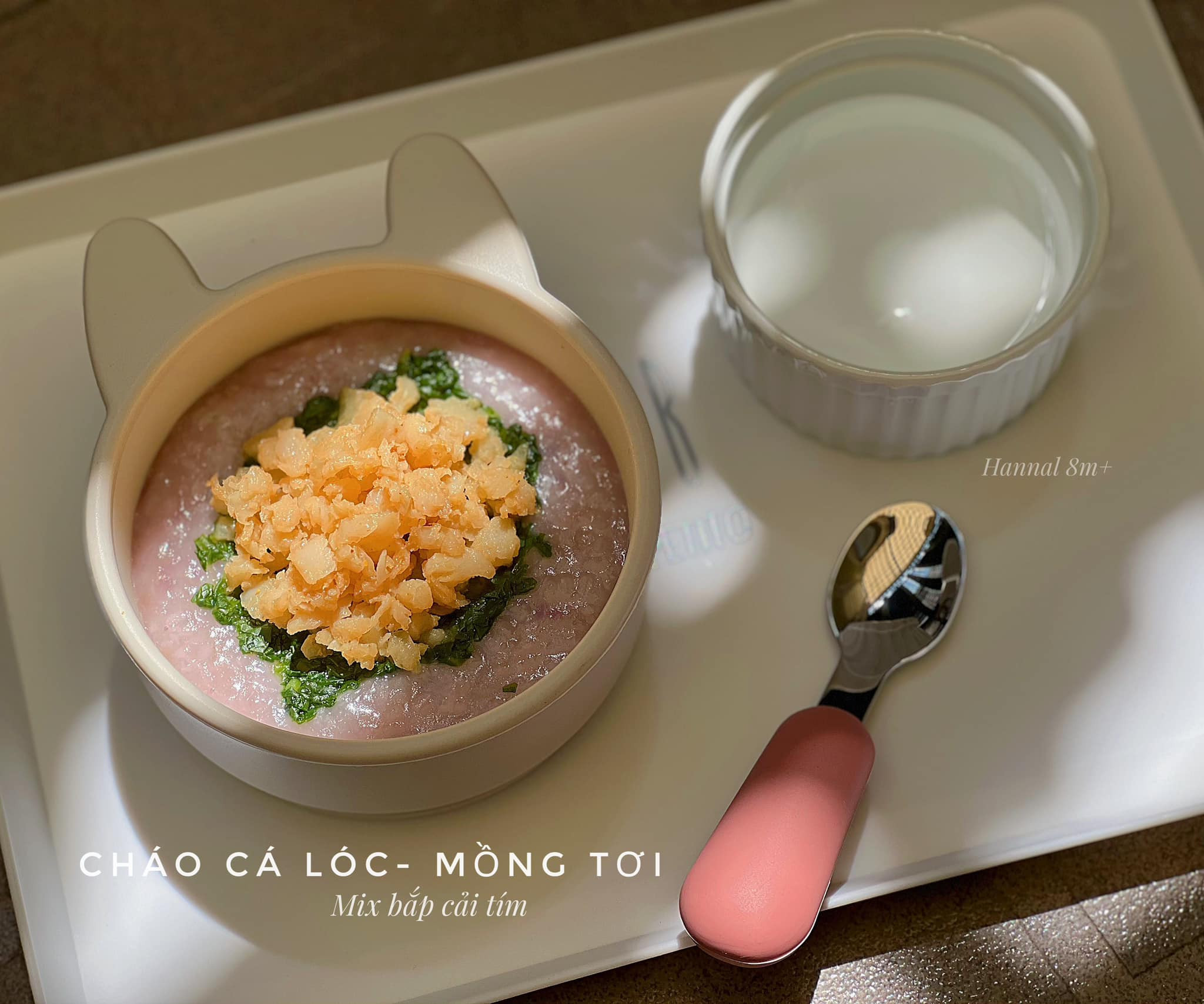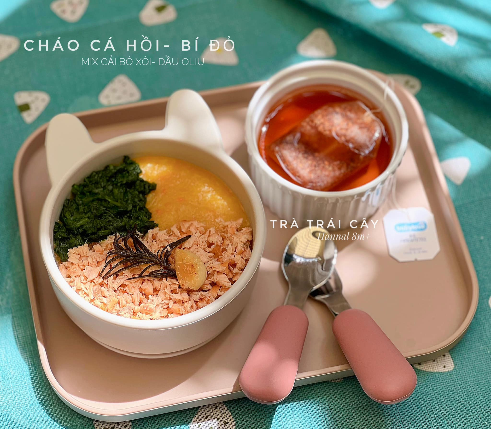 Thế nên chị Nguyễn Thị Khánh Ly (SN 1994, TP.HCM) đã xây dựng thực đơn ăn dặm của bé 8 tháng với đa số là cháo nhưng cả tuần không trùng bữa nào. Cách trang trí bữa ăn của bà mẹ trẻ cũng rất bắt mắt khiến bé thêm hào hứng mỗi khi đến bữa.