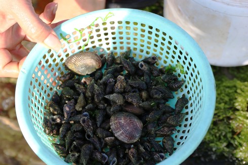 ...Và những loài ốc biển, sò biển, tôm cá nhỏ... |