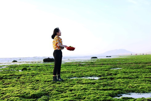 Chị Nguyễn Thị Thảo đến từ Q.9 (TP.HCM) cho biết, nghe mấy đứa em nói nên tranh thủ những ngày nghỉ đi một lần cho biết. "Và tôi thật không ngờ ở cung đường ven biển đẹp nhất Việt Nam này lại có bãi rong biển tuyệt đến thế. Đến đây mùa này rất thích, ngoài hải sản ngon, khí hậu ở đây luôn mát mẻ, mấy ngày qua lúc nào cũng tầm 25 độ C. Sang năm tôi lại đến đây 1 lần nữa...", chị Thảo nói.