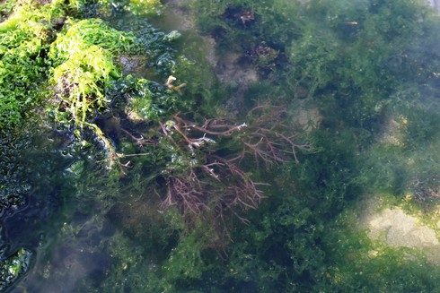 ...và những hõm nước thiên nhiên phủ đẩy rong và những thực vật biển để du khách đắm mình chiêm ngưỡng. |
