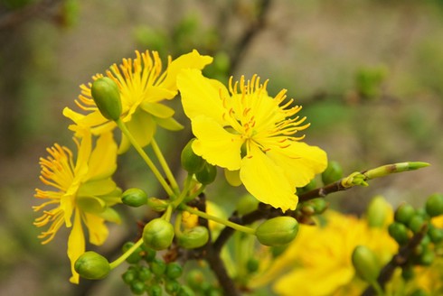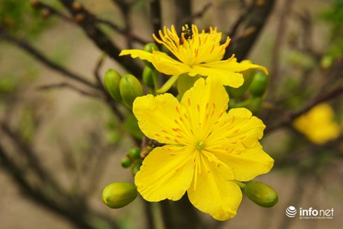 Theo ông Xuân, chủ của 500 gốc mai cho biết, mai nở đúng dịp tết hay không phụ thuộc rất nhiều vào thời tiết. Năm nay thời tiết thuận lợi mai ra nhiều búp nở đúng dịp tết. |