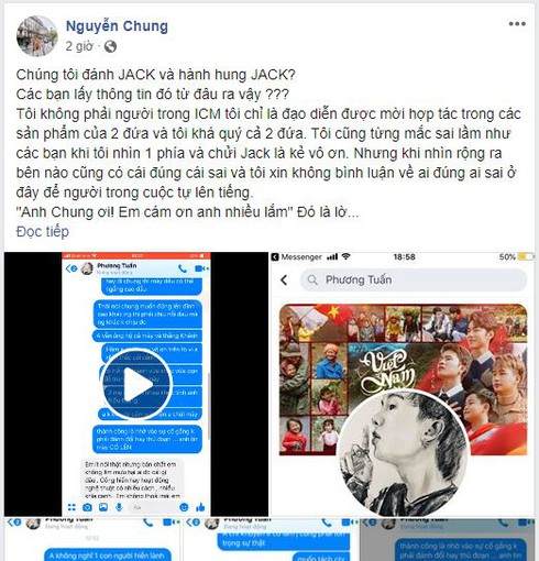 Mới đây, Nguyễn Chung - đạo diễn MV Hoa vô sắc và nhiều MV khác của Jack - K ICM đã đăng tải một bài viết dài, khẳng định bản thân, bà Tạ Hà và K ICM chưa từng đánh hay hành hung Jack. Anh cho biết, tin đồn Jack bị đánh, bị nhốt ở Thái Lan là vô căn cứ, cũng đăng tải bằng chứng anh và Jack nói chuyện vô cùng thân thiết.