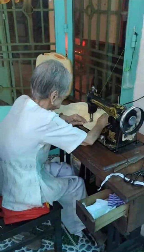 Cụ bà ngồi may khẩu trang ấy không phải ai khác mà chính là Mẹ Việt Nam anh hùng Ngô Thị Quýt, năm nay đã 95 tuổi, sống ở Phường 5, quận Gò Vấp, TP.HCM.