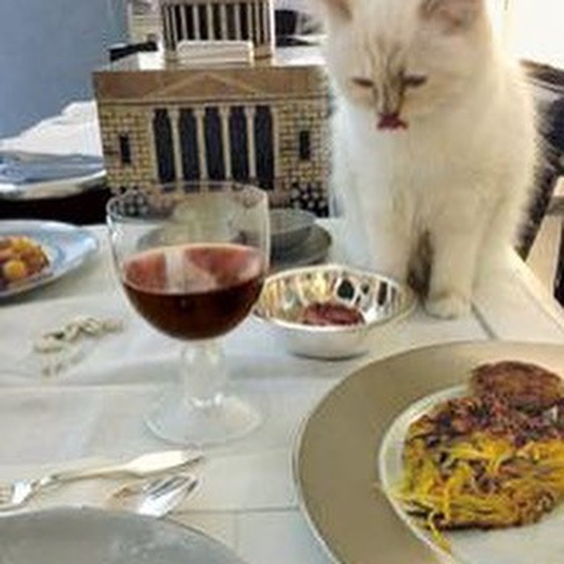 Mèo ngồi bàn ăn với các món được nhà bếp chuẩn bị riêng theo sở thích |