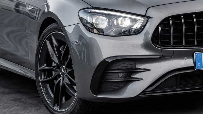 Điểm thay đổi trên tất cả phiên bản E-Class 2021 chính là phần cản trước. Phiên bản sedan có cụm đèn pha vuốt mỏng với trang bị đèn Full-LED tiêu chuẩn, cụm lưới tản nhiệt có cấu trúc hình thang ngược và mở rộng sang hai bên với các họa tiết kim cương. Trong khi phiên bản E53 AMG có cụm lưới tản nhiệt hầm hố với các nan dọc thưa hơn phiên bản tiền nhiệm.