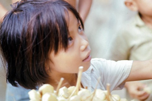 Bé gái bán mía ghim ở bến Bạch Đằng, 1965. Ảnh: Dick Lee. |