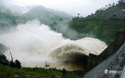 Thủy điện Đăk Mi 4 ở thượng nguồn sông Vu Gia - Thu Bồn (Quảng Nam) xả lũ về hạ du (Ảnh: HC) |
