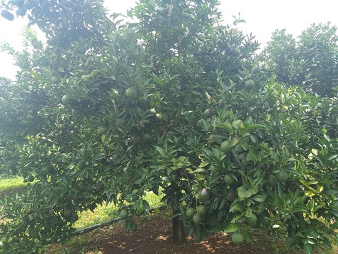 Những gốc cam, bưởi được lớn lên nhờ phân gà, phân chuồng ủ hoai mục và một số thuốc bảo vệ thực vật sinh học nên rất xanh tốt, tạo bóng mát cho cả một vùng. Anh Thùy nói đùa rằng, nhìn vườn nhà anh cứ như một khu rừng vậ,y vì nó đầy cỏ dại và cành lá xum xuê.