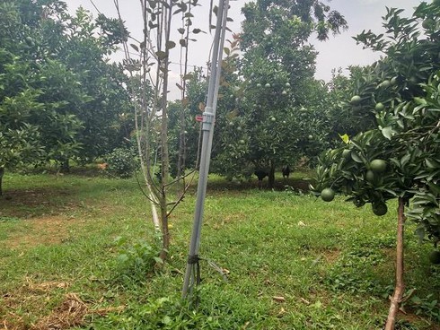 Mặc dù thời tiết diễn biến thất thường nhưng vườn cam của anh Thùy vẫn đang phát triển rất tốt. |