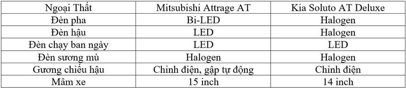 Có thể thấy, Attrage 2020 vượt hẳn đối thủ về trang bị khi gần như toàn bộ hệ thống đèn chiếu sáng sử dụng công nghệ LED, không chỉ hiện đại mà còn an toàn hơn. Gương chiếu hậu của Attrage chỉnh điện và có khả năng gập tự động. Trong khi đó, đèn pha, đèn hậu và đèn sương mù của Kia Soluto chỉ là Halogen. Kích thước mâm xe của Attrage cũng lớn hơn, tạo dáng vẻ bề thế, cứng cáp hơn so với đối thủ.