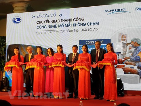 Lãnh đạo Sở Y tế Hà Nội, lãnh đạo BV cùng đơn vị chuyển giao công nghệ cắt băng chính thức dụng công nghệ mổ mắt không chạmSmartSurfACE tại BV Mắt Hà Nội |