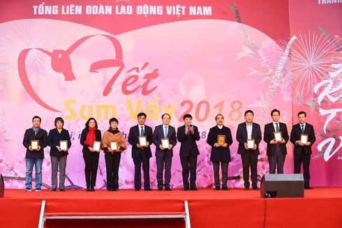 Tại chương trình, 60 công nhân lao động được lãnh đạo Đảng, Nhà nước và tổ chức Công đoàn trực tiếp trao tặng quà và vé xe về quê miễn phí. Đây là những công nhân lao động đại diện cho 5.000 công nhân được Liên đoàn Lao động Tp. Hà Nội hỗ trợ trong dịp này. Nhân dịp Tết Nguyên đán Mậu Tuất 2018, lãnh đạo Thành phố Hà Nội cũng đã quyết định tặng 2.000 suất quà, với tổng trị giá 1 tỷ đồng, cho 2.000 gia đình công nhân viên chức lao động khó khăn.