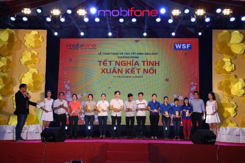 Chương trình” Tết nghĩa tình – Xuân kết nối” của MobiFone mỗi năm trao tặng hàng nghìn tấm vé tàu xe cho công nhân và người lao động các KCN, KCX về quê đón Tết |