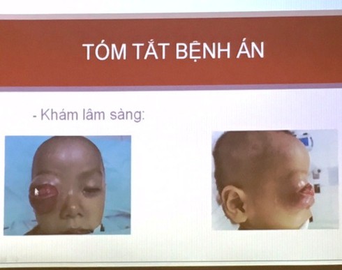 Sáng 11/8, ThS.BS Nguyễn Minh Hảo Hớn, Phó trưởng khoa Mũi xoang cho biết, bé trai 16 tháng tuổi (ngụ tại Bình Thuận) được chuyển từ Bệnh viện Mắt sang trong tình trạng một bên mắt sưng to, lồi như trái bóng. Khai thác tiền sử bệnh nhi cho thấy, trước đó vài tháng, bé có bị viêm mũi xoang nhưng điều trị không đầy đủ, tái phát từng đợt.