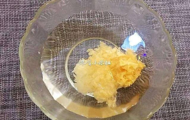 Bước 1: Ngâm nấm tuyết với nước ấm, rửa sạch sau khi ngâm, cắt bỏ phần cuống cứng, xé nấm tuyết thành từng miếng nhỏ.