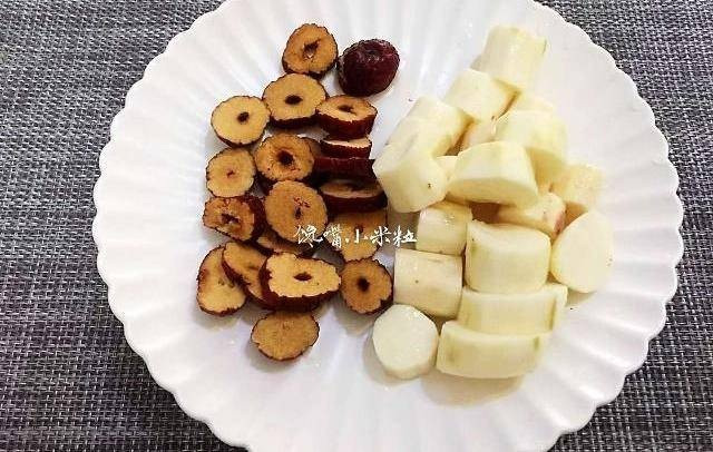 Bước 2: Rửa sạch táo đỏ, bỏ lõi và cắt thành khoanh tròn, khoai mỡ gọt vỏ cắt miếng vừa ăn.