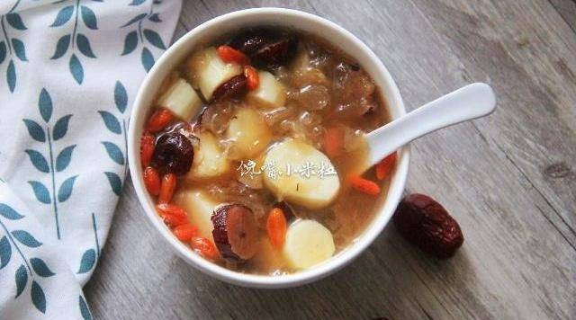 Món canh khoai mỡ và nấm tuyết bổ phổi, dưỡng âm, làm đẹp da mặt, chống lão hóa, ăn ngon mà không tức bụng.