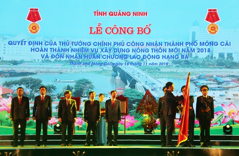Tối 16/11, tại TP. Móng Cái, tỉnh Quảng Ninh tổ chức lễ công bố Quyết định của Thủ tướng Chính phủ công nhận TP. Móng Cái hoàn thành chương trình xây dựng nông thôn mới và đón nhận Huân chương Lao động hạng Ba.