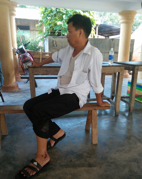 Sau đó, trung tá Phạm Văn Dũng tìm đến Trạm y tế xã Tân Trạch, huyện Bố Trạch để các nhân viên y tế băng bó, khử trùng vết thương. Vết thương sâu ở mắt cá chân trái buộc anh Dũng phải khâu 6 mũi.