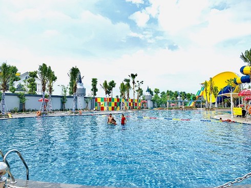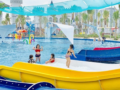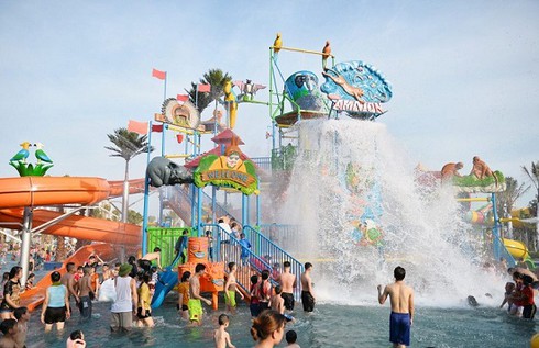 Nhiều gia đình chọn công viên nước làm địa chỉ vui chơi. |