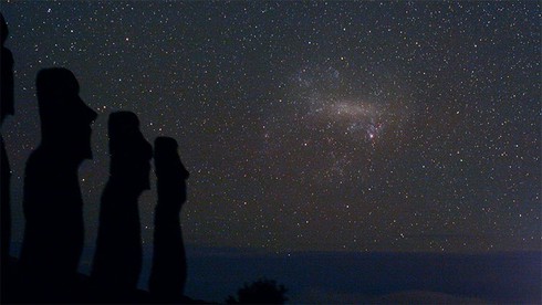 Thiên hà này sáng và gần chúng ta đến nỗi có thể quan sát bằng mắt thường. Nó là quầng sáng giữa bầu trời trong góc chụp từ Đảo Phục Sinh - (Ảnh: EPOD). |