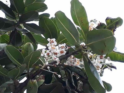 Tháng 5 vừa rồi, ngang qua một số đoạn trên tuyến đường Hoàng Sa - Võ Nguyễn Giáp - Trường Sa, thỉnh thoảng tôi gặp những cây mù u 4-5 năm tuổi bắt đầu ra hoa.