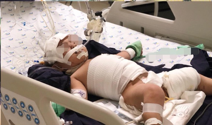 BS. Huỳnh Thủy Tiên - Khoa Chấn thương và chỉnh hình của bệnh viện cho biết bé gái bị vấp vào thau nước đun sôi. Khi vào viện, bé đã được cấp cứu tại BV Đa khoa quận Thốt Nốt nhưng tình trạng sốc bỏng nặng nên bé được chuyển tuyến.