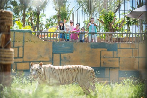 Vườn Quý Vương mang đến cơ hội cho các vị khách chiêm ngưỡng những loài động vật quý hiếm như “bạch hổ” bengal(Ảnh: Vinpearl Land) |