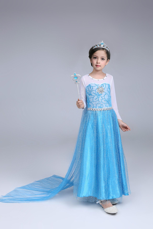 Đặc biệt, bạn sẽ cần chuẩn bị một chiếc váy màu xanh thiên thanh với đuôi áo dài để hóa trang thành nhân vật nữ hoàng băng giá đáng yêu này.