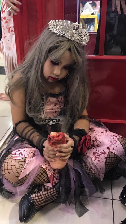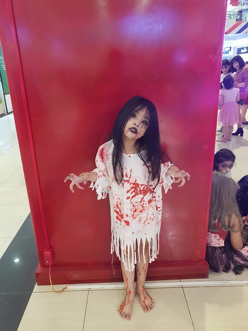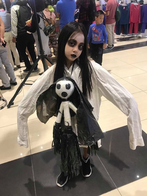 Các bạn nữ hay các bé gái có thể chọn nhân vật búp bê Annabelle để hóa trang. Là nhân vật trong bộ phim kinh dị nổi tiếng, búp bê Annabelle thường mặc đầm trắng có dính máu.