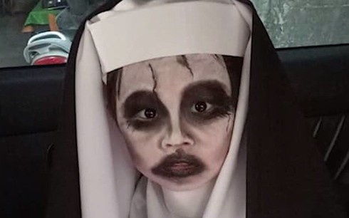 Còn gì độc lạ hơn khi bạn hóa thân thành The Nun trong đêm Halloween, đảm bảo đi tới đâu các bạn cũng sẽ nghe thấy tiếng hét thật lớn của những người xung quanh.