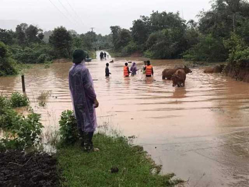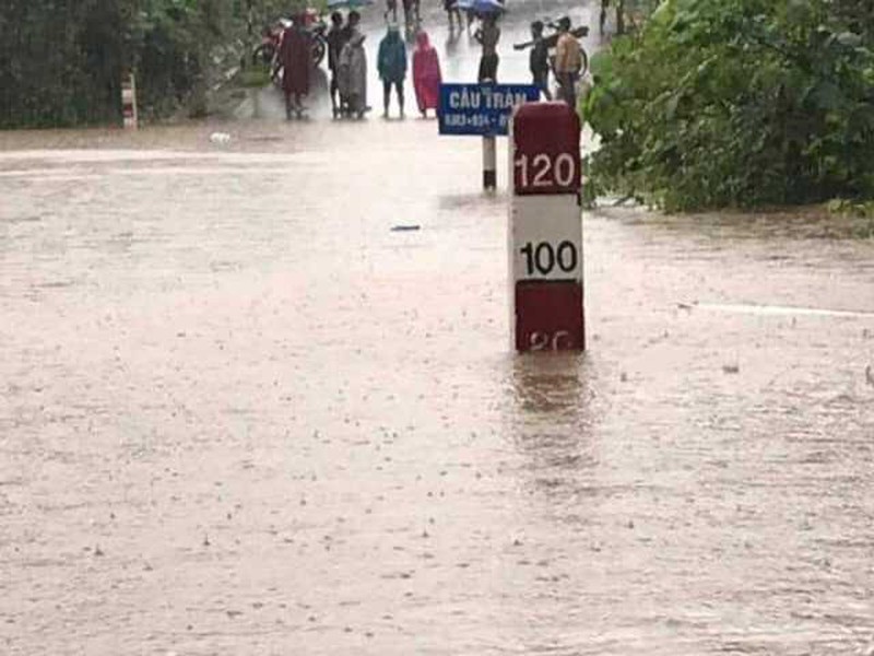 Cụ thể, huyện Hướng Hóa (Quảng Trị) một số điểm như đường 15D (ngã ba La Lay đi CKQT La Lay) đoạn tiếp giáp giữa thôn Xa Tuông và thôn Trùm (xã Ba Tầng), 5 điểm thuộc Bản 10, thôn 4, Pa Lo Ô (xã Thanh), đập tràn tại thôn Ta Quan và Húc (xã A Xinh) và 3 điểm tại Bản Giai, Bản 2, 3 (xã Thuận) nước dâng cao khiến người dân và phương tiện không thể lưu thông.