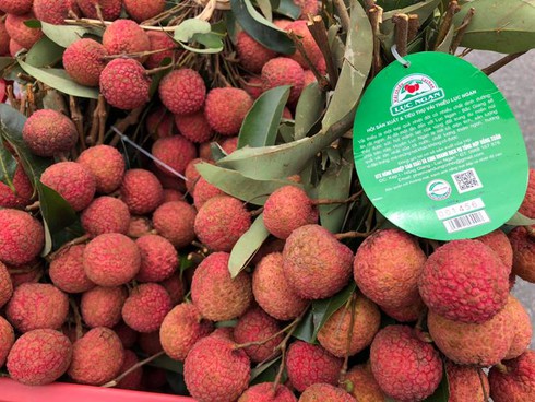 Vải thiều Lục Ngạn có thương hiệu, với đầy đủ thông tin: chứng nhận Viet GAP, mã vạch truy xuất nguồn gốc, chỉ dẫn địa lý, bao bì bắt mắt. |