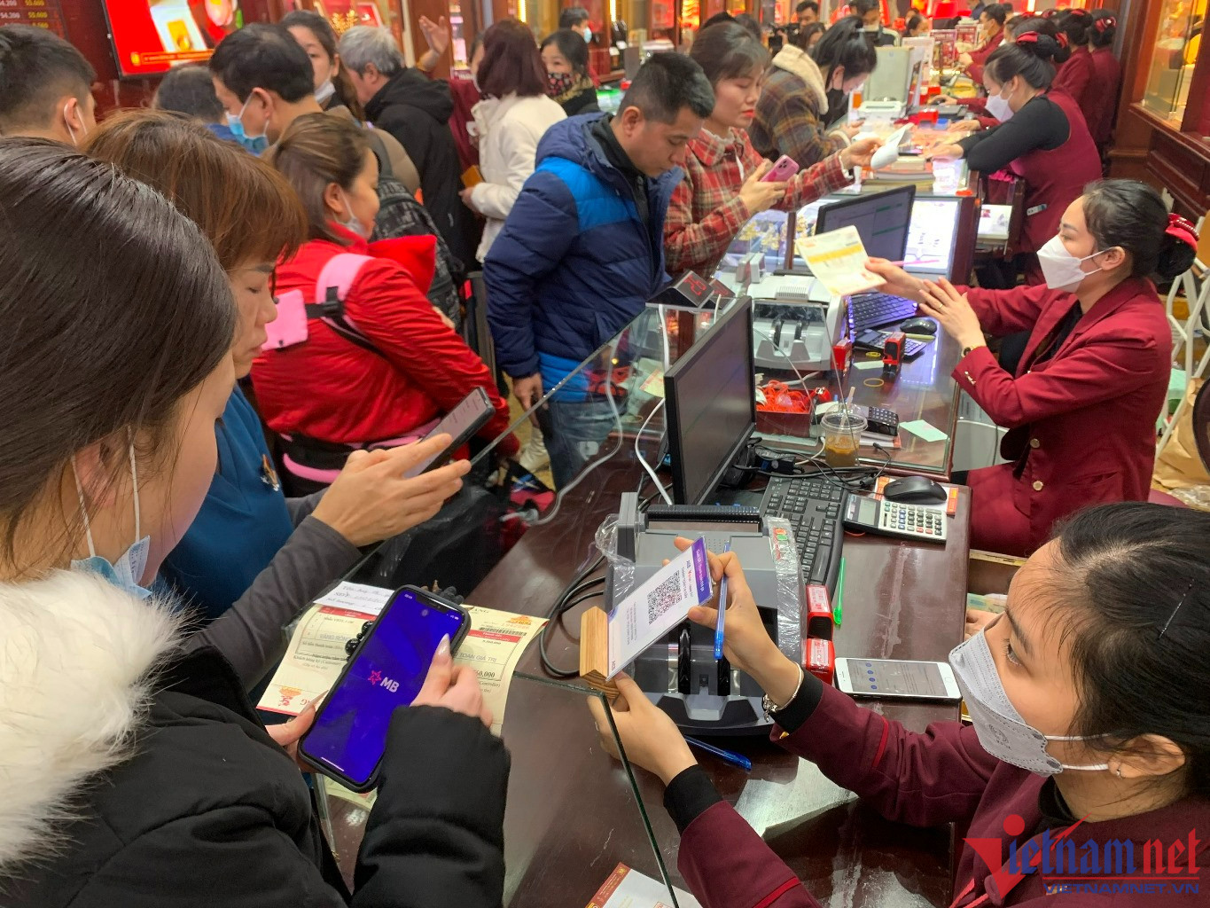 Mua vàng ngày Thần tài chủ yếu chuyển khoản, khách nhập chục lần mới thanh toán được