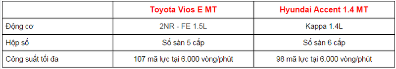 Đánh giá động cơ và tính năng an toàn, theo số liệu từ nhà sản xuất, mức tiêu hao nhiên liệu trên Toyota Vios E ở 3 điều kiện: cao tốc, hỗn hợp và đô thị lần lượt là 5, 5,8 và 7,3 lít/100km. Trong khi đó, con số này trên Hyundai Accent 1.4 MT là 4,74, 5,58 và 7,04 lít/100km.