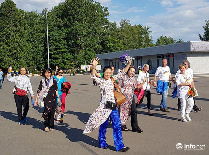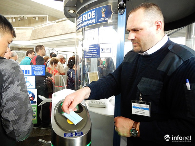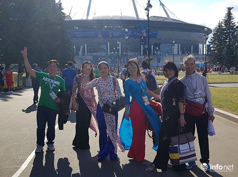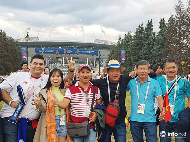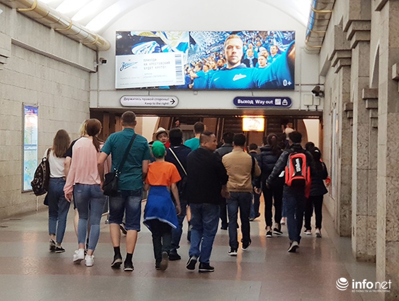Đoàn fan hâm mộ Việt Nam do Vitour tổ chức đi tàu điện ngầm ở TPSaint Petersburg để đến SVĐ Zenit. |