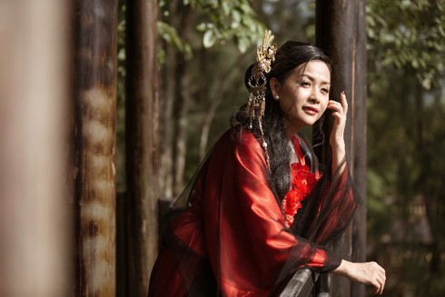 GĐSX phim Mỹ nhân vào bếp Trần Uyên Phương với tạo hình Trưởng Công chúa trong MV. |