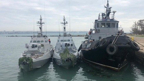 Ba tàu hải quân Ukraine bị Nga bắt giữ trong vụcăng thẳng trên eo biển Kerch hồi năm 2018. |