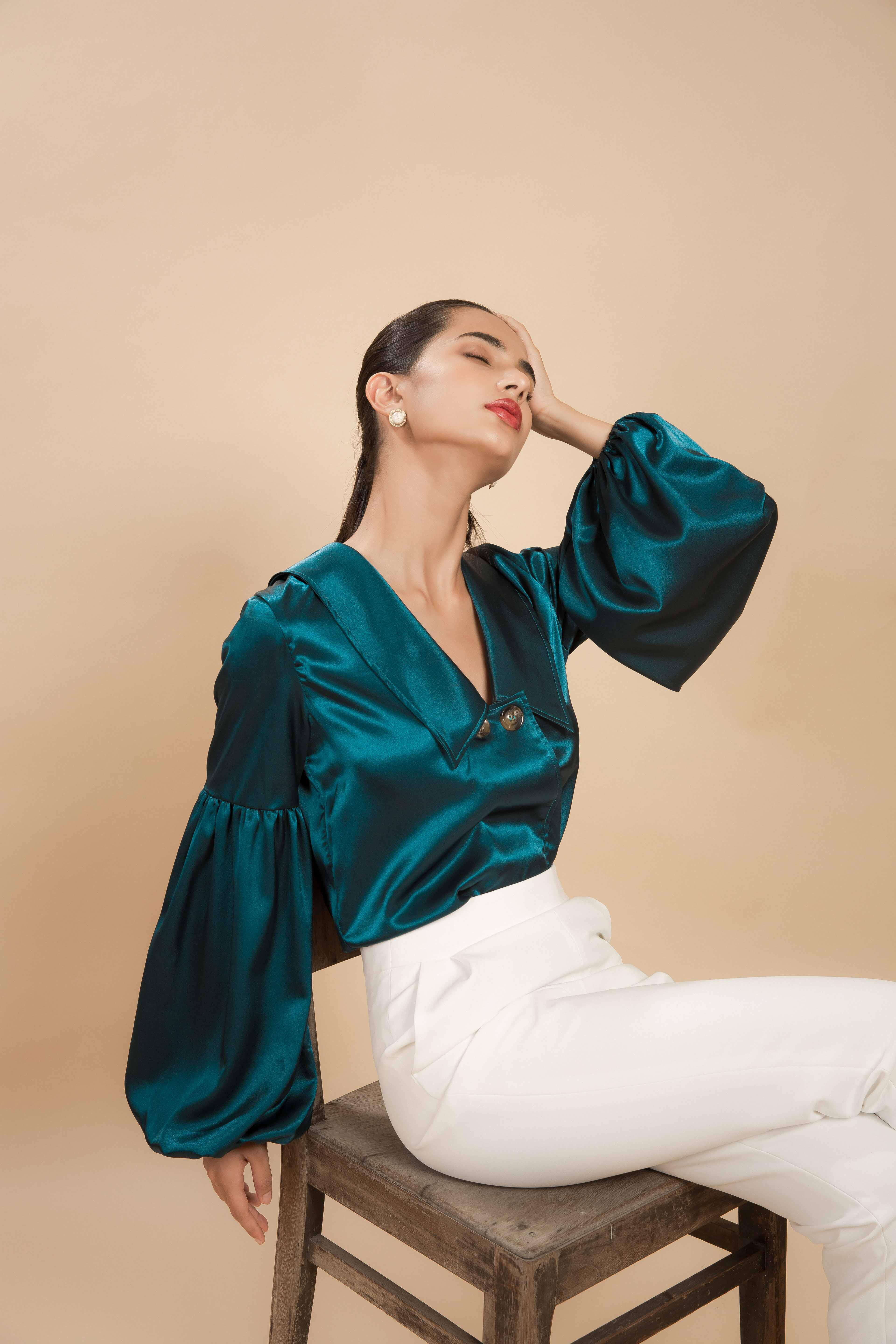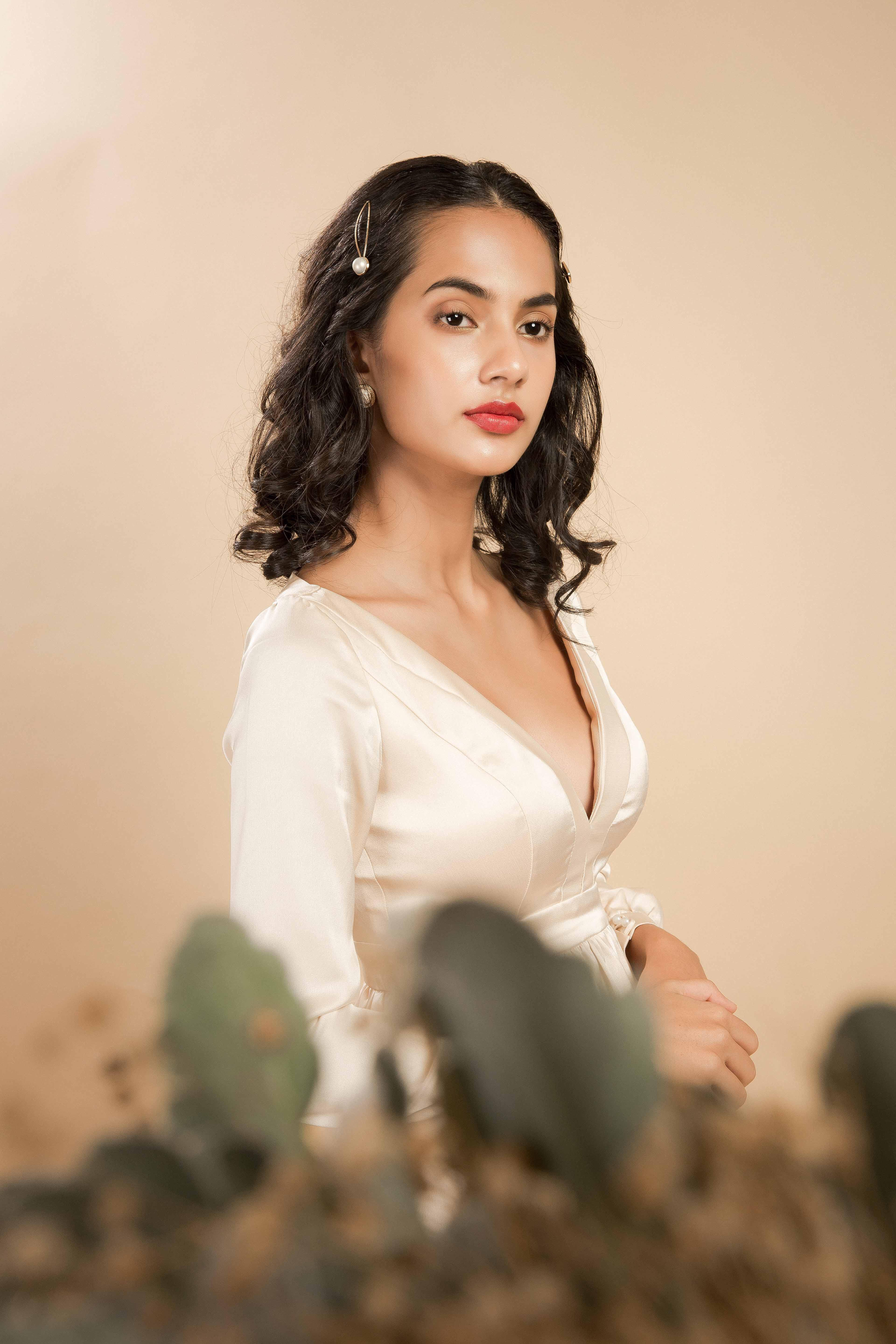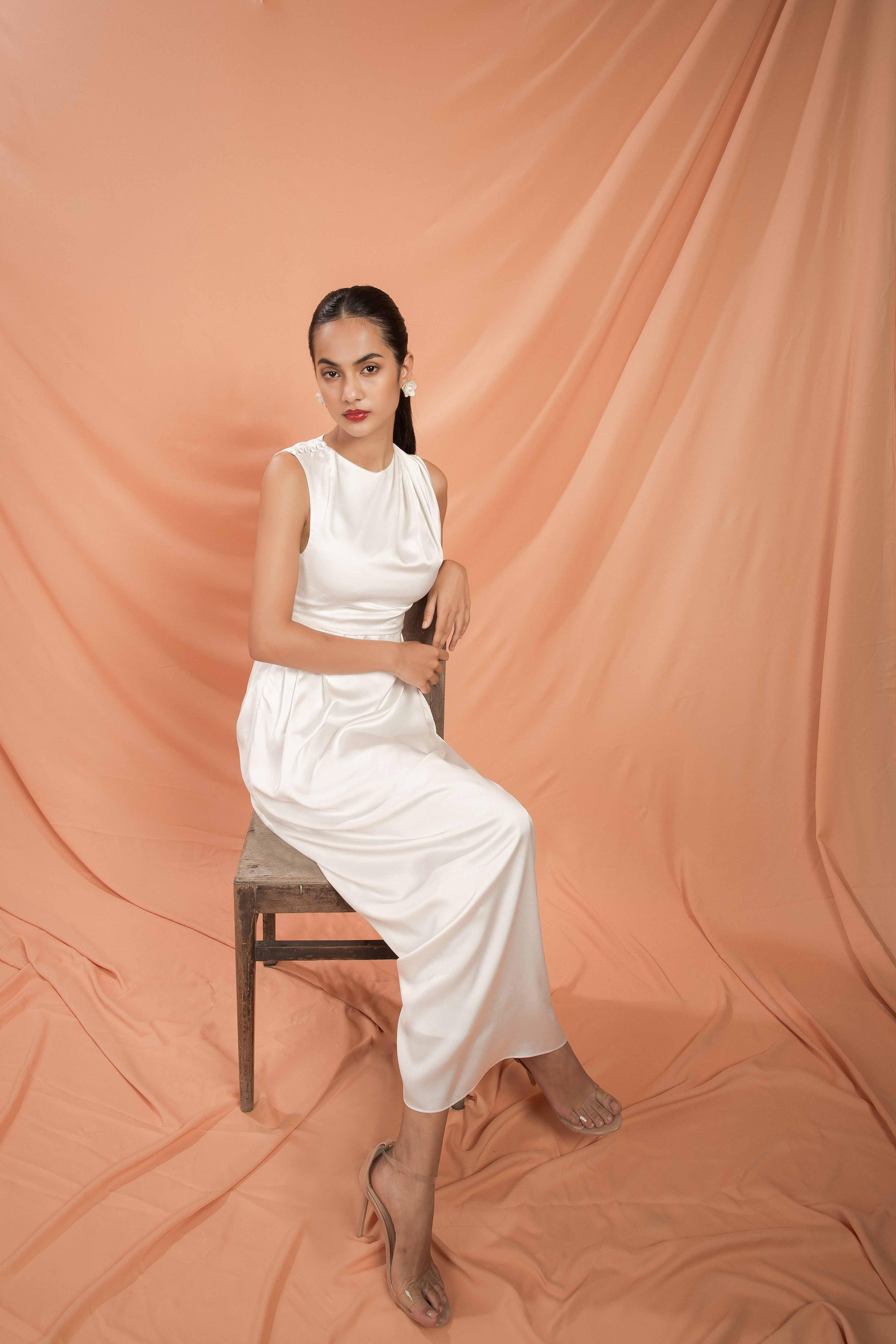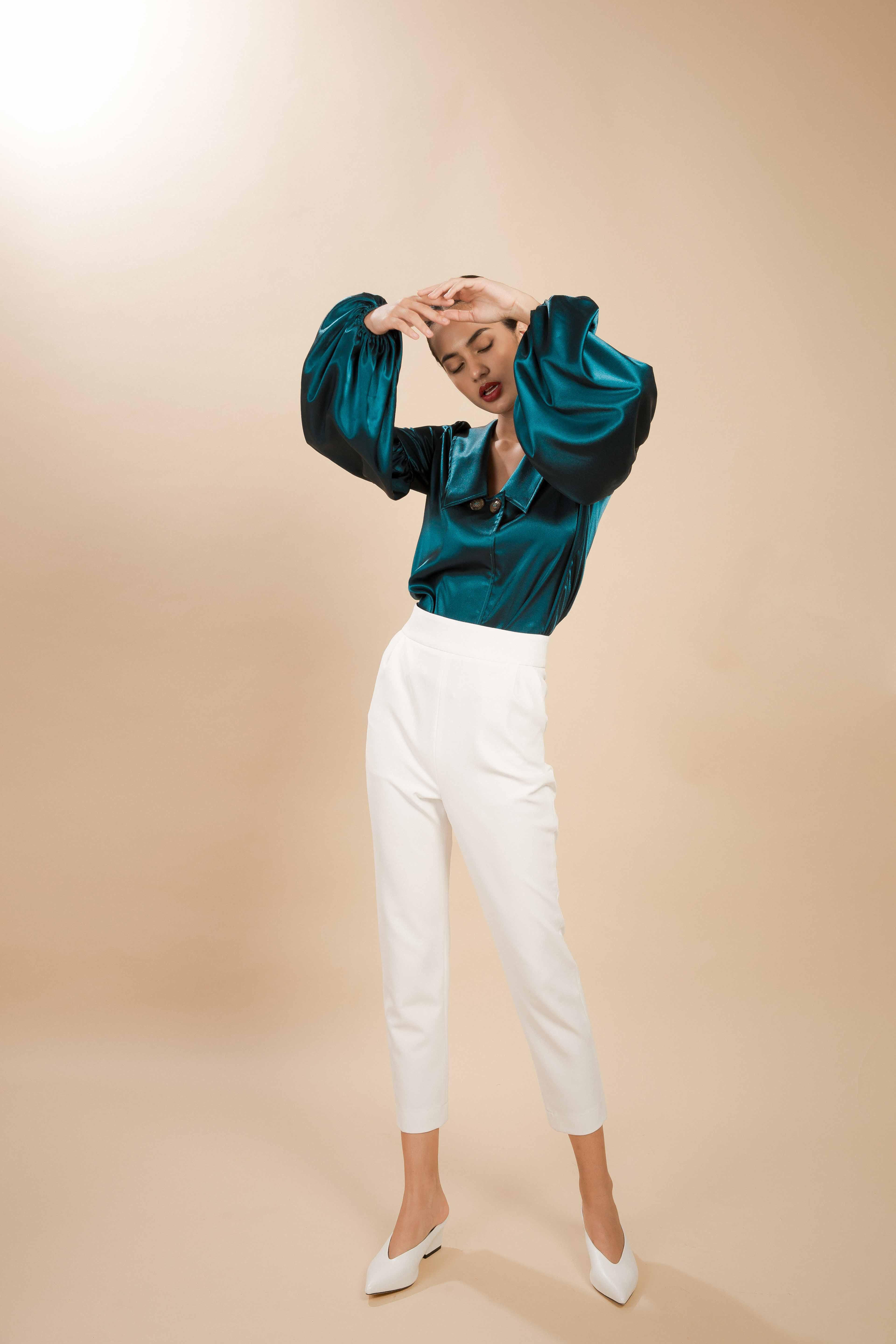 Mới đây nhất, xuất hiện trong bộ ảnh có tên Jade on the leaf - Ngọc trên lá, Emma Lê khoe trọn thần thái sang chảnh, quyến rũ trong những chiếc đầm lụa có màu sắc trang nhã của NTK Dolly Bùi.