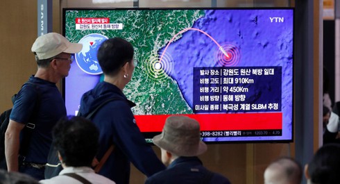 Người dân Hàn Quốc theo dõi tin tức về vụ phóng tên lửa của Triều Tiên. Ảnh: Reuters |