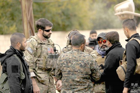 Binh sĩ Mỹ và các tay súng SDF ở Syria. |