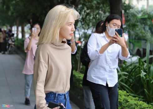 Một số khán giả đứng chờ ở khách sạn vui mừng khi bắt gặp nữ thần tượng. Họ gọi tên nữ ca sĩ và dùng điện thoại ghi lại khoảnh khắc đời thường của thành viên nhóm Red Velvet. Đáp lại, Wendy cũng thân thiện vẫy tay chào fan. |