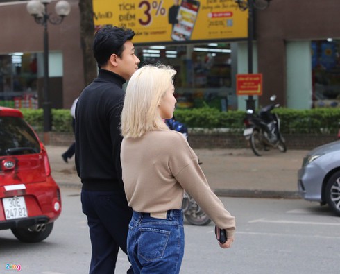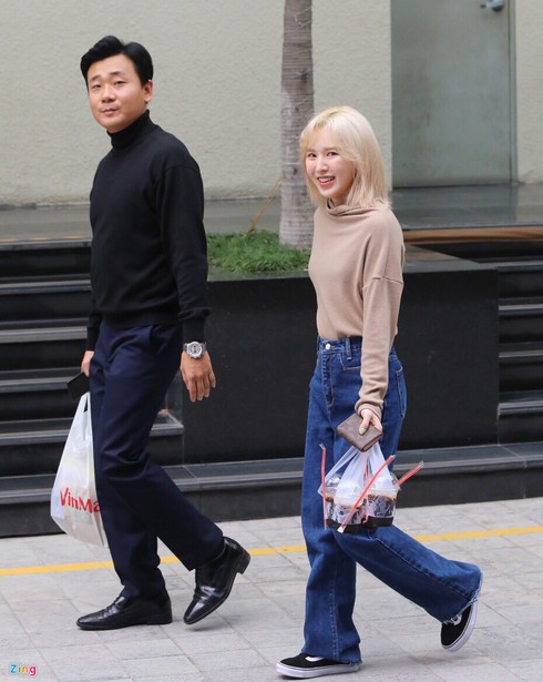 Wendy mặc trang phục đơn giản khi cùng quản lý đi mua đồ. |