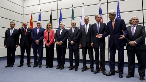 Các nguyên thủ quốc gia tươi cười sau khi ký kết thỏa thuận hạt nhân Iran vào năm 2015. |